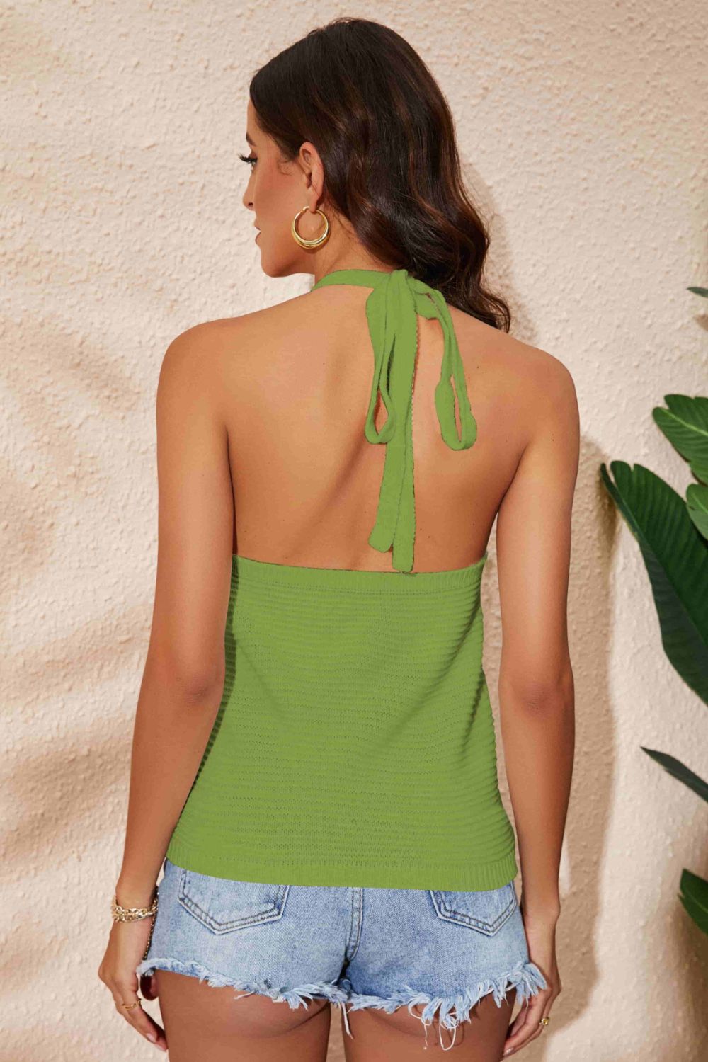 - Neckline: Halter neck